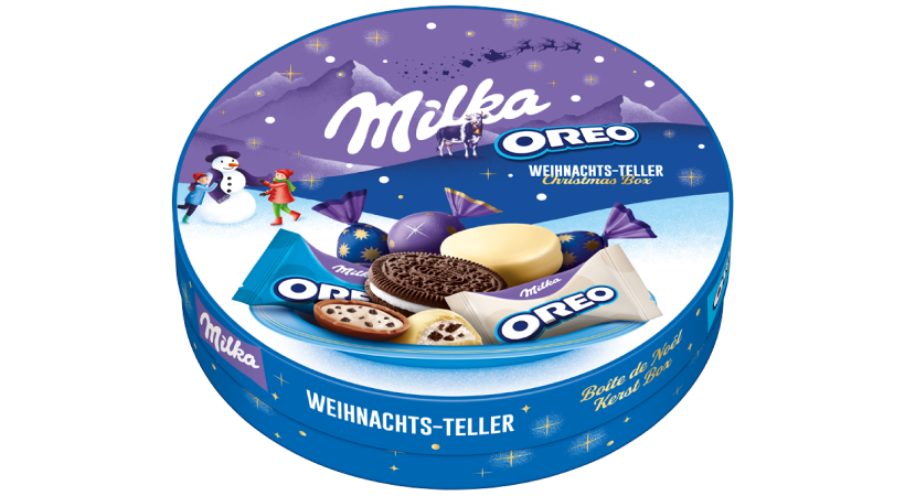 Weihnachtsfreude zum Teilen! Der Milka & Oreo Weihnachts-Teller enthält 20 bunt gemischte Milka Oreo Schokoladenprodukte und Oreo Kekse und eignet sich daher ideal zum Teilen mit Freunden und Familie.