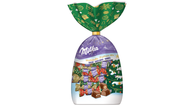 Zu Weihnachten gibt es einzeln verpackte Milka Weihnachts-Pralinen in den Geschmacksrichtungen Mandel, Haselnuss und Kakao. Sie sind perfekt zum Naschen und Teilen oder als Mitbringsel geeignet.