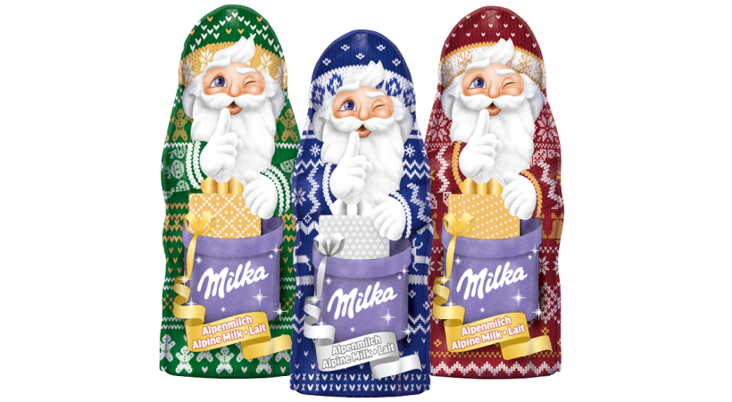 Die Design Edition des Alpenmilch Milka Weihnachtsmanns 90g zeigt den klassichen Weihnachtsmann gleich drei Mal in neuem Gewand. Das dekorativ festliche Design eignet sich ideal zum Verschenken an die Liebhaber unserer leckeren Milka Alpenmilch Schokolade.