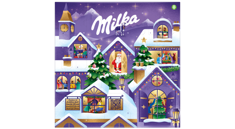 Der Milka Adventskalender für Erwachsene in einem attraktiven & edlen Design! Gefüllt mit den köstlichen Milka Feinen Kugeln und dem beliebten Milka Weihnachtsmann Alpenmilch 45 g. Mit zusätzlichem Mehrwert durch digitale Aktivierung hinter jedem Türchen: