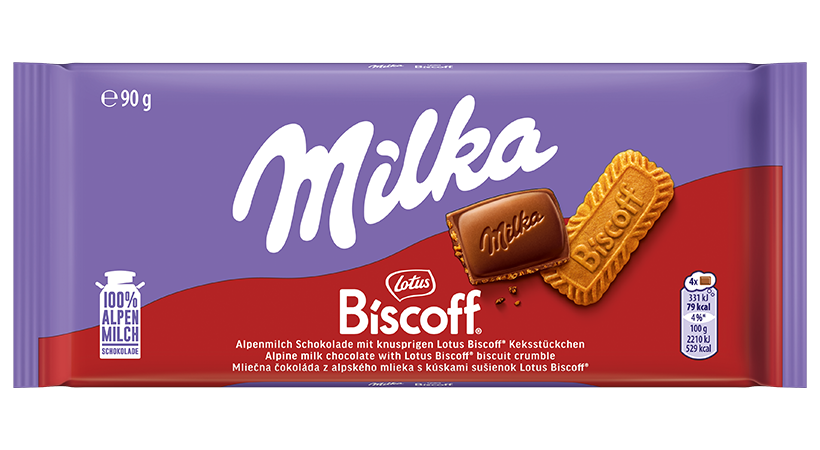 Zarte Milka Schokolade und knuspriger Lotus Biscoff Keks vereint zu unwiderstehlichem Genuss! Milka & Lotus Biscoff: Ein perfektes Match.