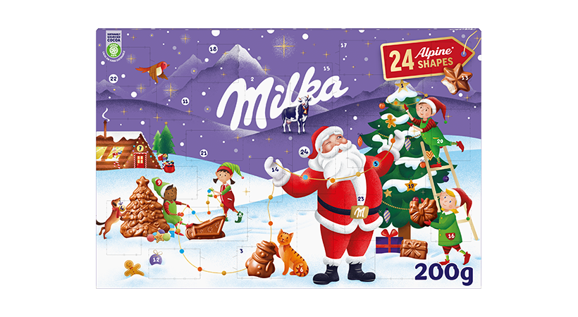 Cuenta los días hasta Navidad con el calendario de Adviento de Milka y recibe una sorpresa diaria de chocolate. Cada chocolatina está hecha con leche de los Alpes y cremoso cacao Milka, garantizando un sabor auténtico. Este calendario no solo ofrece un delicioso chocolate, sino que también presenta un diseño invernal encanatador que da ese toque navideño a cuaqluier espacio. Con 200 g de chocolate y 24 sorpresas, es indicado para regalar o compartir.