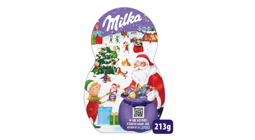 NOUVEAU DESIGN - Patientez jusqu'à Noël avec le tendre chocolat Milka... mais pas seulement! Partez à la découverte de la Laponie à travers 24 histoires à écouter pleines de tendresse. Flashez le QR code sur le calendrier, et rendez-vous au village du Père Noël pour des aventures féériques !