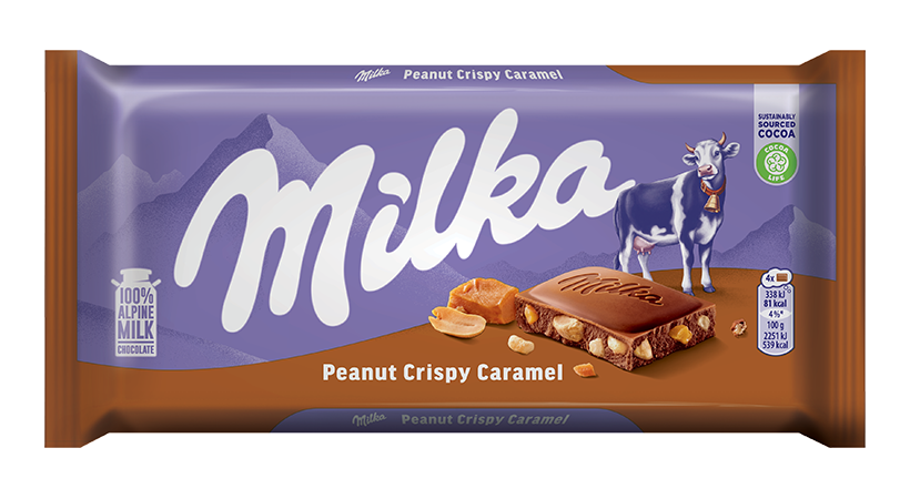 Milka Peanut Crisp je ukusna kombinacija Milka Alpine Milk čokolade koja se topi u ustima s hrskavim kikirikijem, hrskavim kukuruznim pahuljicama, rižinim pahuljicama i ukusnim komadićima karamele.\nOčekuje vas poseban doživljaj okusa: kikiriki može biti tako mekan.