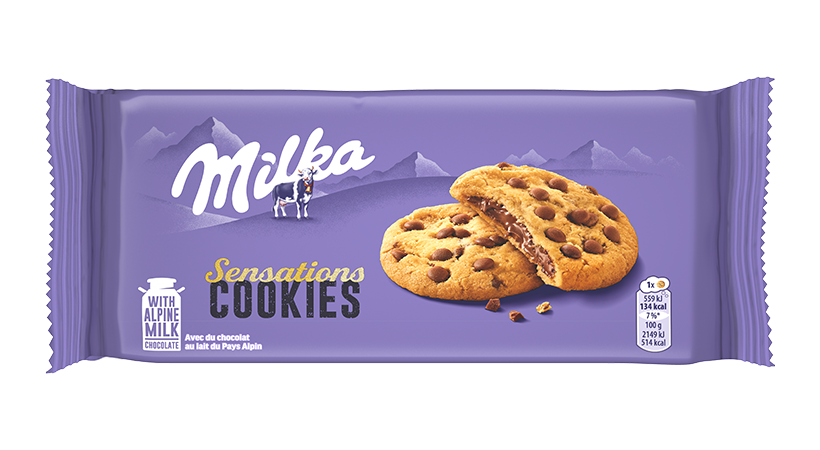 Sensationeel lekker! Een heerlijk krokant koekje gebakken met Milka chocolade chips en een zachte kern van Milka chocola.